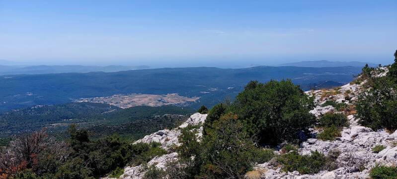 Sur la crête de la Sainte Baume à notre droite, on y aperçoit les structures de l'armée.