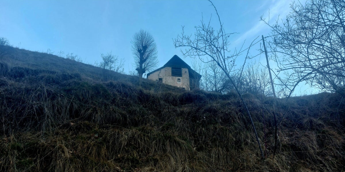 Après quelques pas, nous passons près de cette première grange qui se trouve très prête de l'antenne-relais.