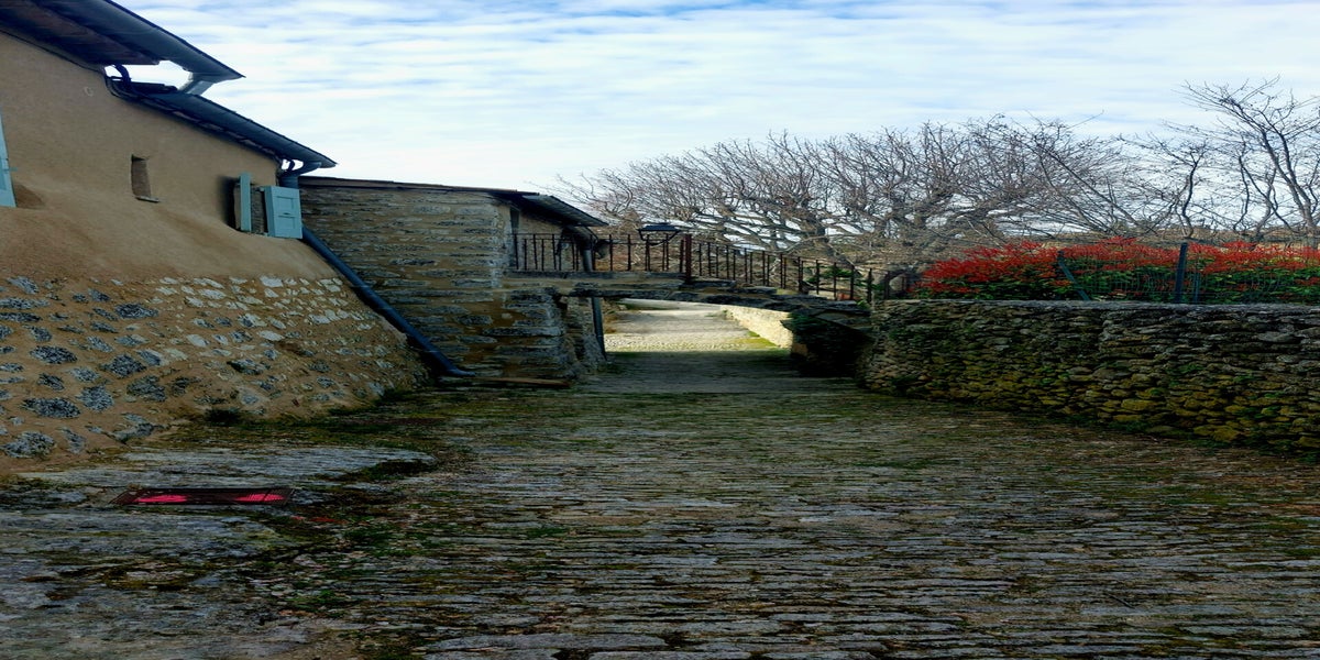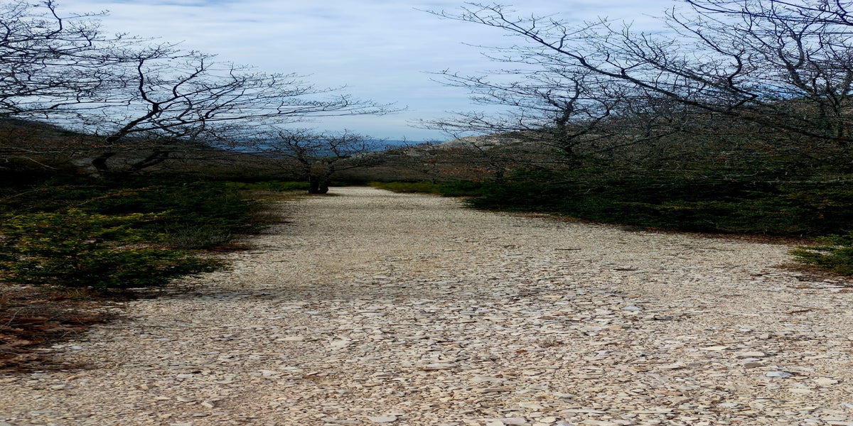 Un large chemin bordé d’un beau mur de pierres nous mène à un point de vue sur le mont Ventoux.