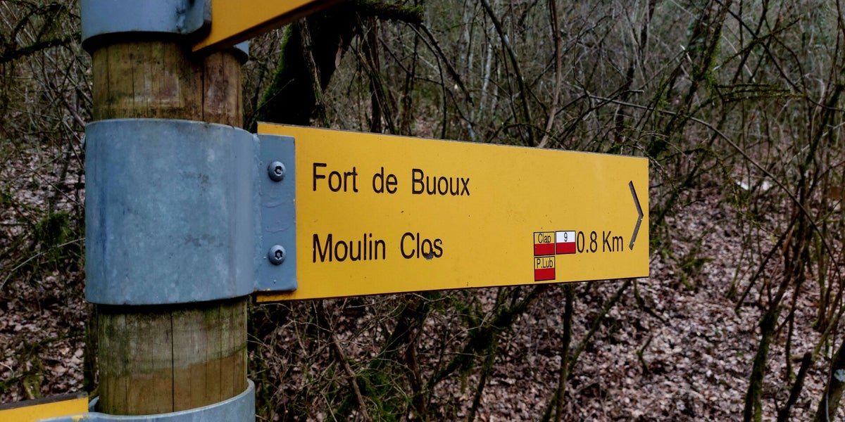 Après avoir descendu ce bel escalier bien raide, nous avons continué le chemin vers l’accueil du fort pour ensuite attaquer la boucle et donc faire une belle et grande montée sur un large chemin dans la forêt.