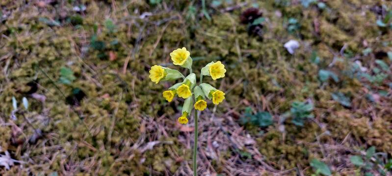 Plus loin, je retombe sur l’une des nombreuses fleurs que j’ai croisé depuis le début. Celle-ci est une Primevère officinale. La Primevère officinale (Primula veris) est une espèce de plantes à fleurs de la famille des Primulacées. Selon les régions, elle est parfois appelée le coucou, la brérelle, le coqueluchon, l’herbe à la paralysie, l’herbe de saint Pierre, la primerolle, la primevère de printemps, la primevère printanière et plus rarement la primevère vraie.