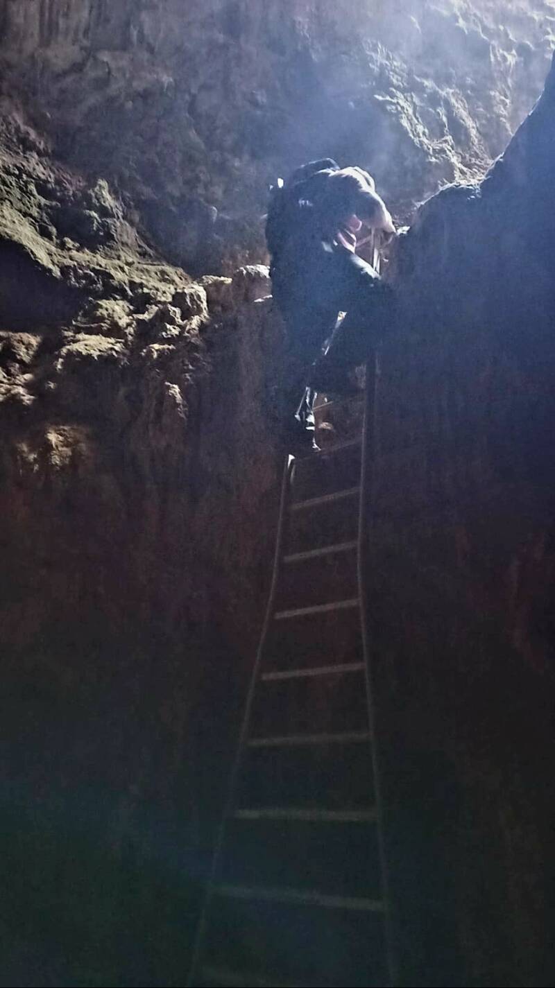 L’échelle ne touche pas le fond donc on y va tranquilou pour aller dans cette seule et unique chambre que l’on pourra visiter, car la veine qui mène à la deuxième chambre est dangereuse à prendre sans équipements.