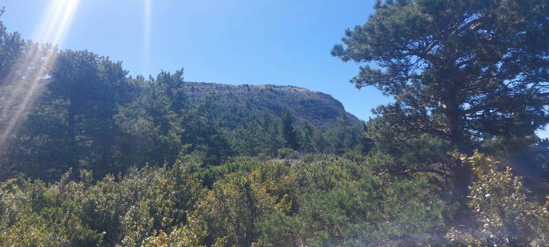Le deuxième, juste derrière et à gauche, c’est le vrai sommet qui est à 1600 mètres d’altitude, alors on pousse sur les jambes et bientôt, je pourrai crier victoire.