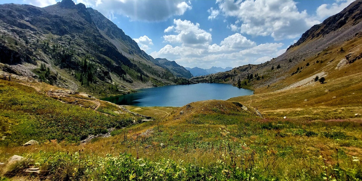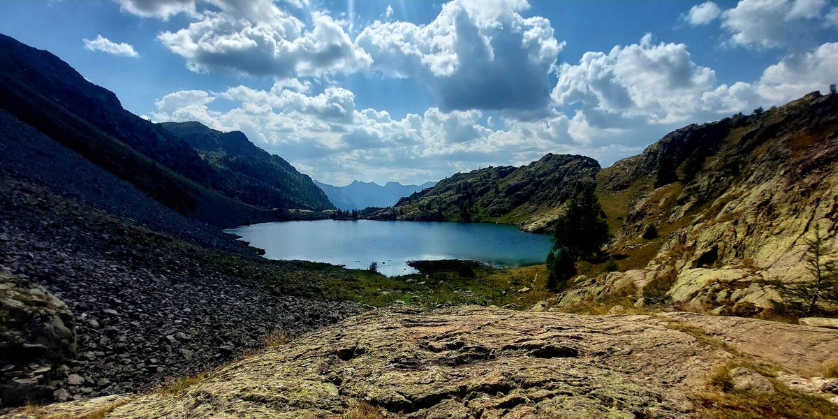 Nous apercevons enfin le premier lac de Vens, étincelant sous le soleil, avec son refuge perché au bout. Un moment magique… et je n’ai pas pu résister à tourner une partie de ma vidéo TikTok ! 📹