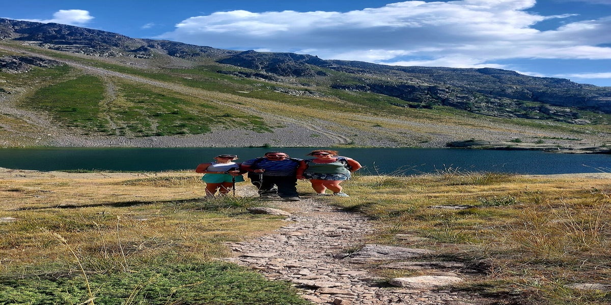 Alors que nous admirions la vue imprenable sur les hauteurs du deuxième lac, une randonneuse nous a gentiment proposé de nous prendre en photo tous les trois. Impossible de refuser — d’autant plus que c’était la parfaite occasion d’immortaliser nos mines déjà bien marquées par les kilomètres. Après quelques poses dignes d’un magazine de randonnée (ou pas), nous avons repris notre souffle, avalé une gorgée d’eau… et attaqué la fameuse dernière montée.