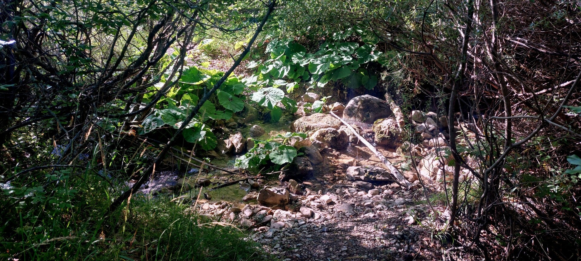 Un peu plus haut, nous tombons sur un autre cours d’eau. L’eau n’est pas très claire, mais avec ma gourde filtrante ÖKO, je pourrais la boire sans problème… sauf qu’elle est déjà remplie !