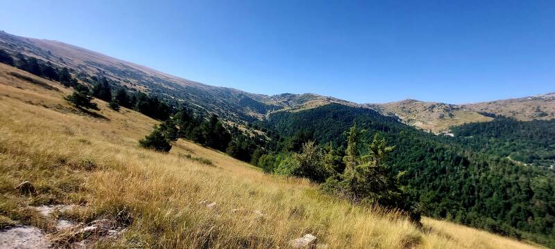 Sur la photo, on voit là où nous sommes passés, tout le long de la crête sur la droite, en partant d’en bas, bien sûr.