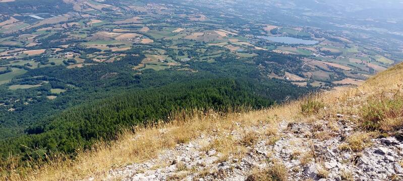 Sur cette photo, on voit vraiment l’inclinaison de la montagne de Céüse, et le sommet approche à grands pas. Il reste encore un peu de marche, mais le relief me fascine.