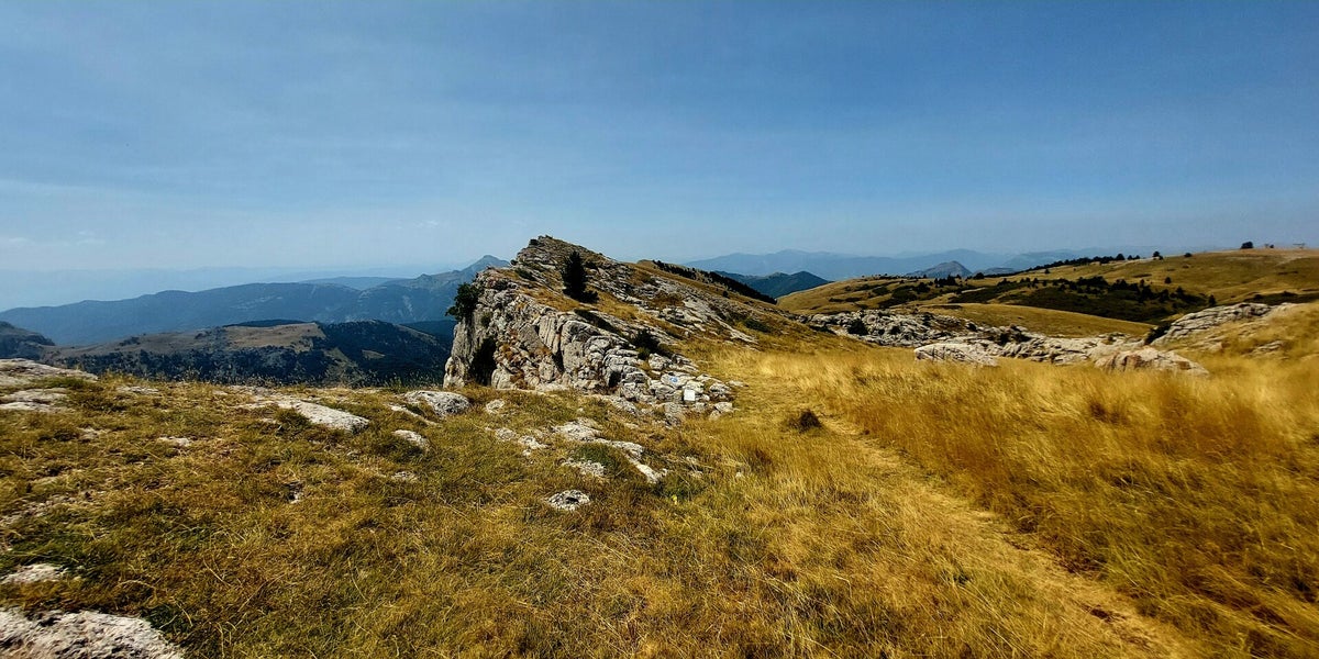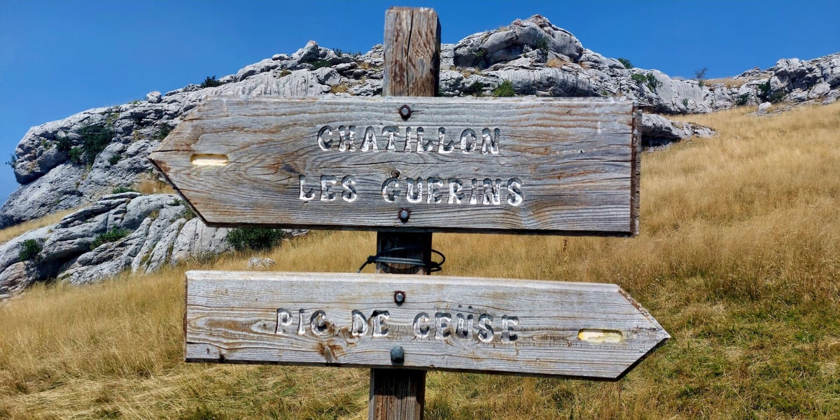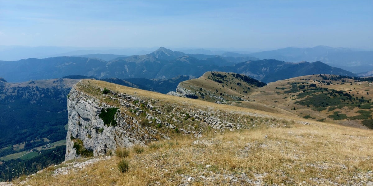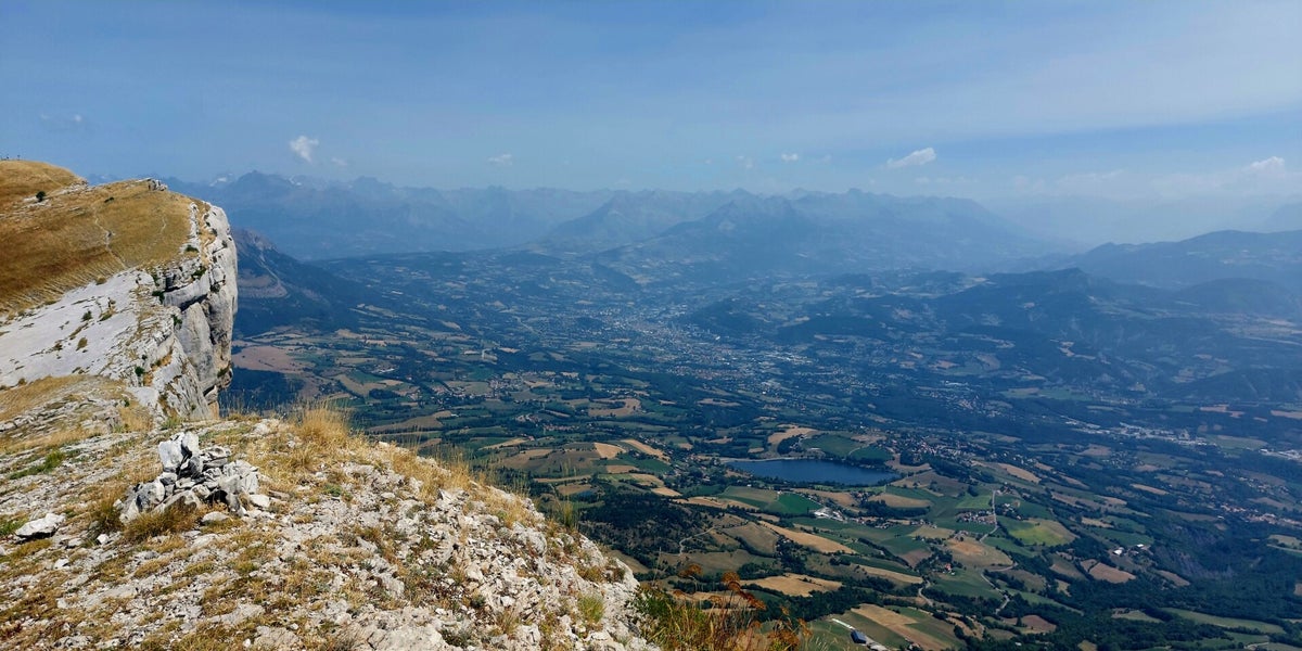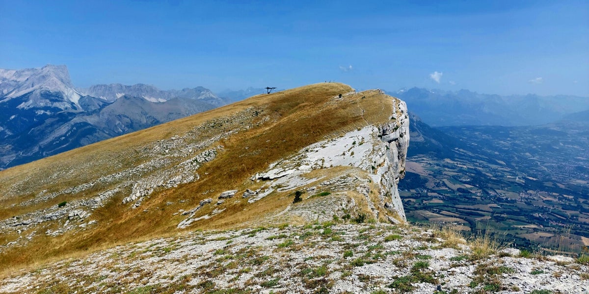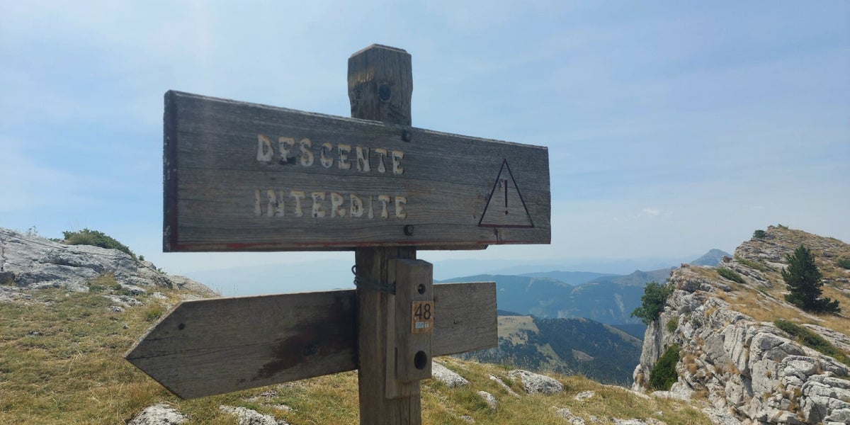 Après une montée pleine de sensations et d’efforts, nous avons enfin atteint le Pic de Céüse, à 2016 mètres d’altitude. Le sommet s’ouvre devant nous, imposant et un peu intimidant, et nous savourons cet instant comme de véritables aventuriers. Mais… les taons sont toujours là, tournant autour de nous comme de vrais vautours affamés ! On rigole, on se prend en photo, on tourne quelques vidéos pour les réseaux sociaux, puis, sans trop traîner, nous reprenons la randonnée, prêts pour la suite de cette aventure épique.