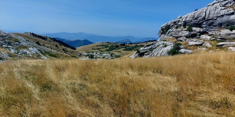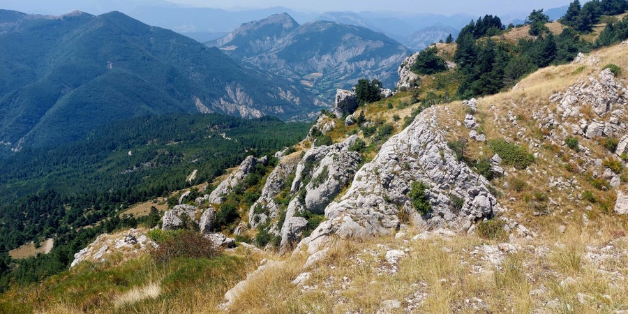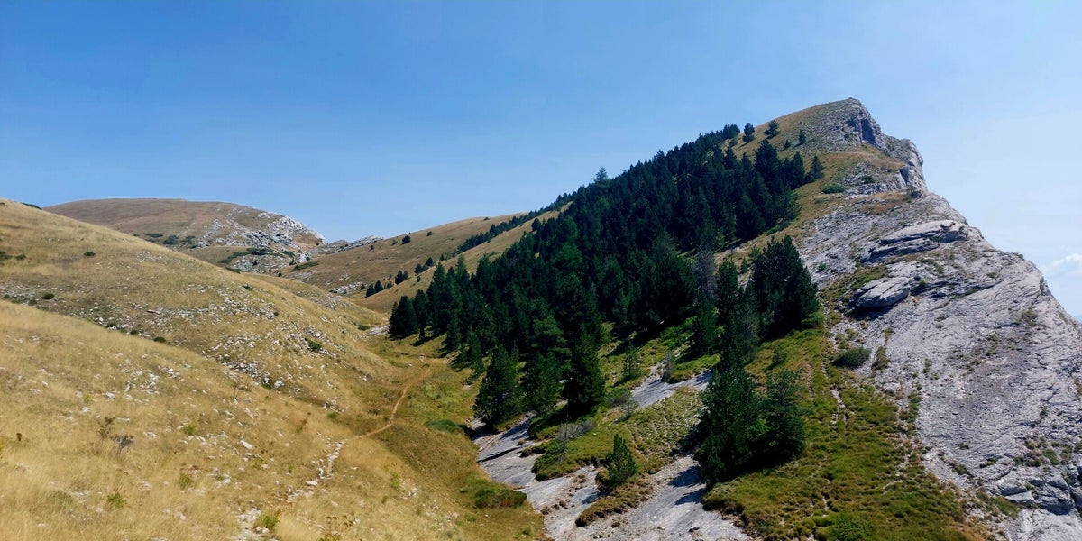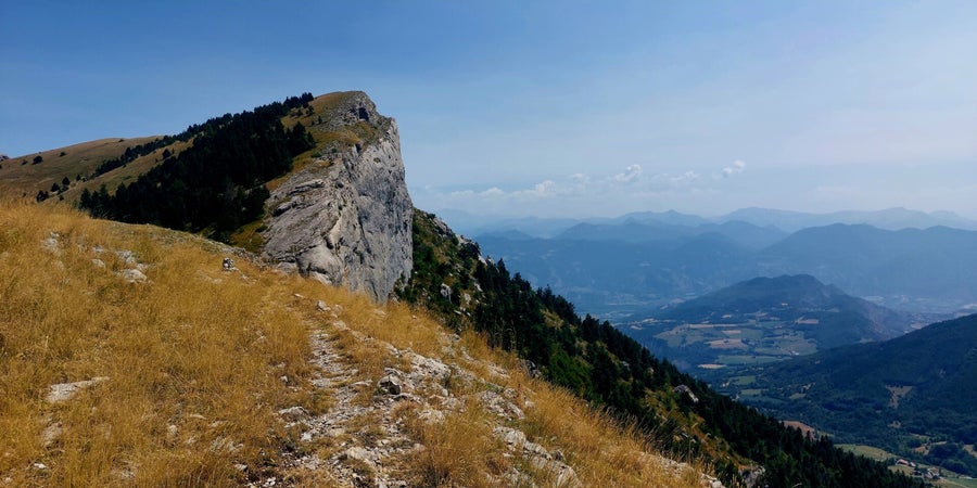 Sur cette photo, on peut vraiment admirer la forme géologique de la montagne, la célèbre crête de Céüse, qui me fascine encore et toujours. Bien sûr, nous aurions dû passer au sommet de cette crête, mais en ne regardant pas assez attentivement la carte, nous avons pris le passage en contrebas.
