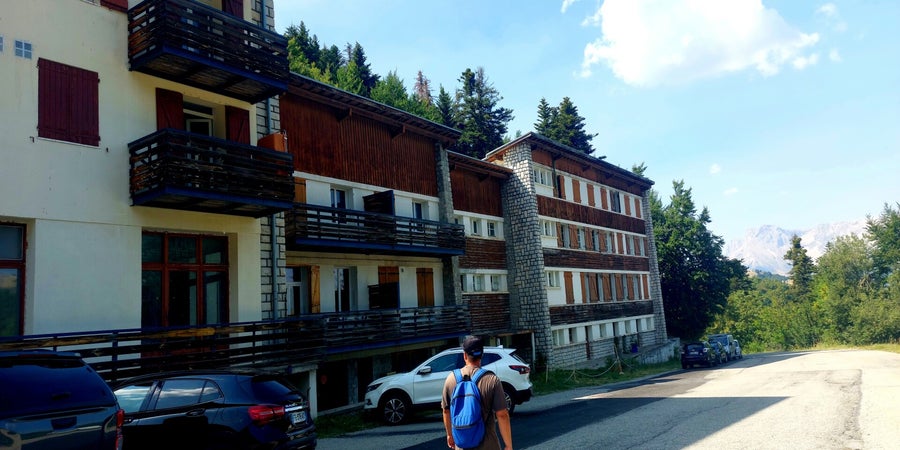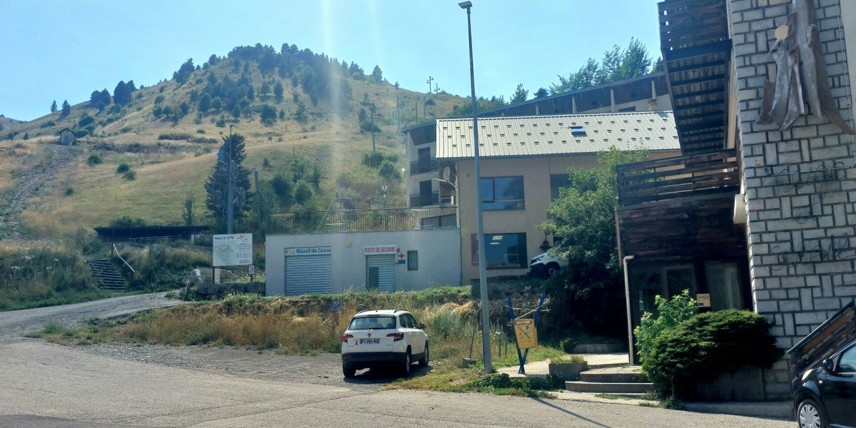 Après quelques minutes de descente, nous arrivons enfin au cœur de la station de Céüse. Et là, surprise : elle est vraiment, vraiment très petite ! Je m’attendais à quelque chose de beaucoup plus grand. Mais ce qui m’interpelle encore plus, c’est l’état des bâtiments, et plus globalement l’état de la station. Franchement, à mon goût, ça ne donne pas du tout envie de venir skier ici : des pylônes complètement rouillés donnent une impression pour le moins inquiétante. Nous restons donc bouche bée, partagés entre étonnement et prudence face à cette station étonnamment vieillissante.