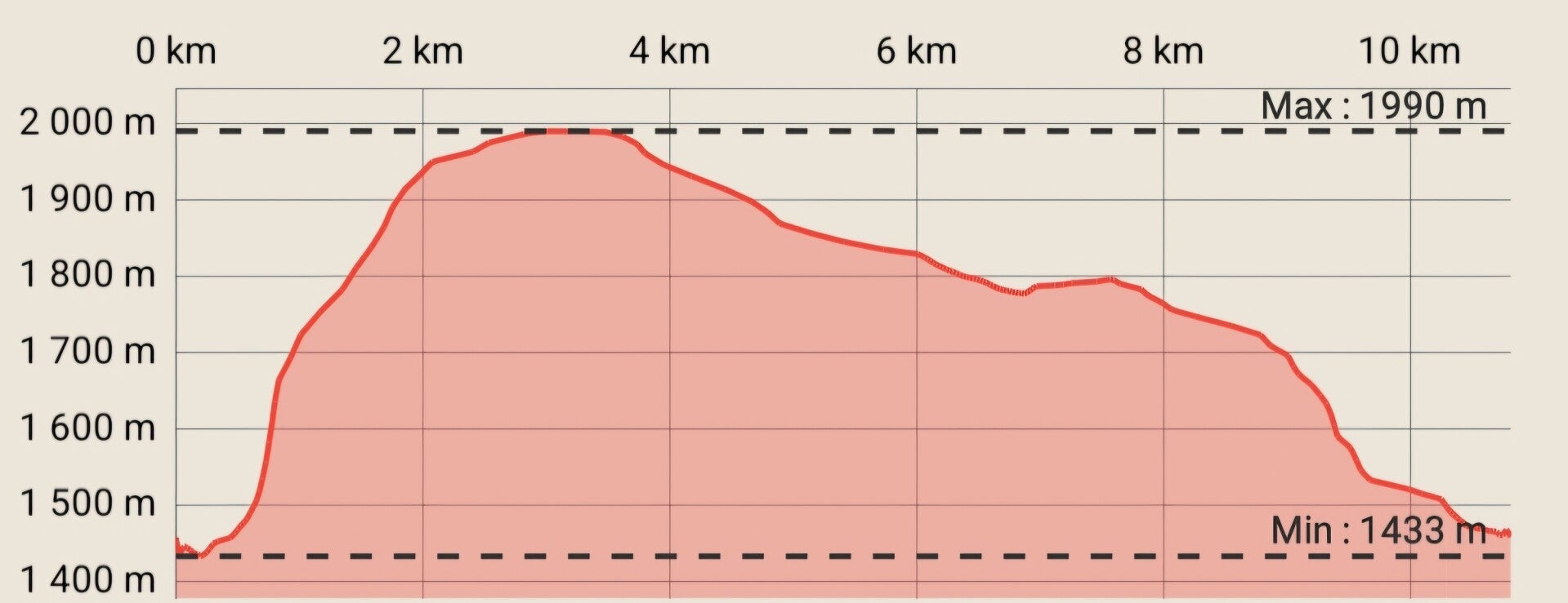 À cet endroit précis de la montée, là où la photo a été prise, un bruit lourd résonnait dans la montagne. Je me tenais au bord de la falaise, et ce que j’entendais m’a glacé le sang : un éboulement. La roche se détachait avec fracas, juste en-dessous de moi, et le tumulte des pierres s’entrechoquant résonnait comme un grondement vivant, comme si la montagne elle-même se mettait en colère. Mon cœur battait à tout rompre. Instinctivement, je me suis écarté du sentier, gardant une distance de sécurité, espérant que la nature, dans sa force brute, ne me toucherait pas. Ce moment, ce bruit, cette violence invisible, m’a rappelé combien la montagne peut être à la fois magnifique et terrifiante.