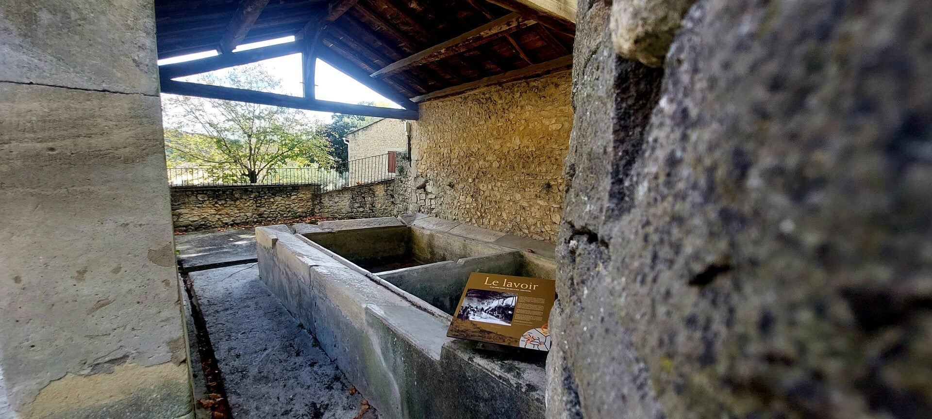 À l’angle de l’intersection, nous tombons sur un charmant petit lavoir, si mignon qu’on aurait dit un décor de carte postale. Mais évidemment, impossible pour nous de rester sérieux plus de trois secondes. Sur la gauche, Élisa n’a pas manqué de se faire remarquer : à peine arrivée, la voilà en train de faire la pitre, posant comme si elle tournait une pub pour “Lavoir Magazine – édition spéciale du Gard”.
